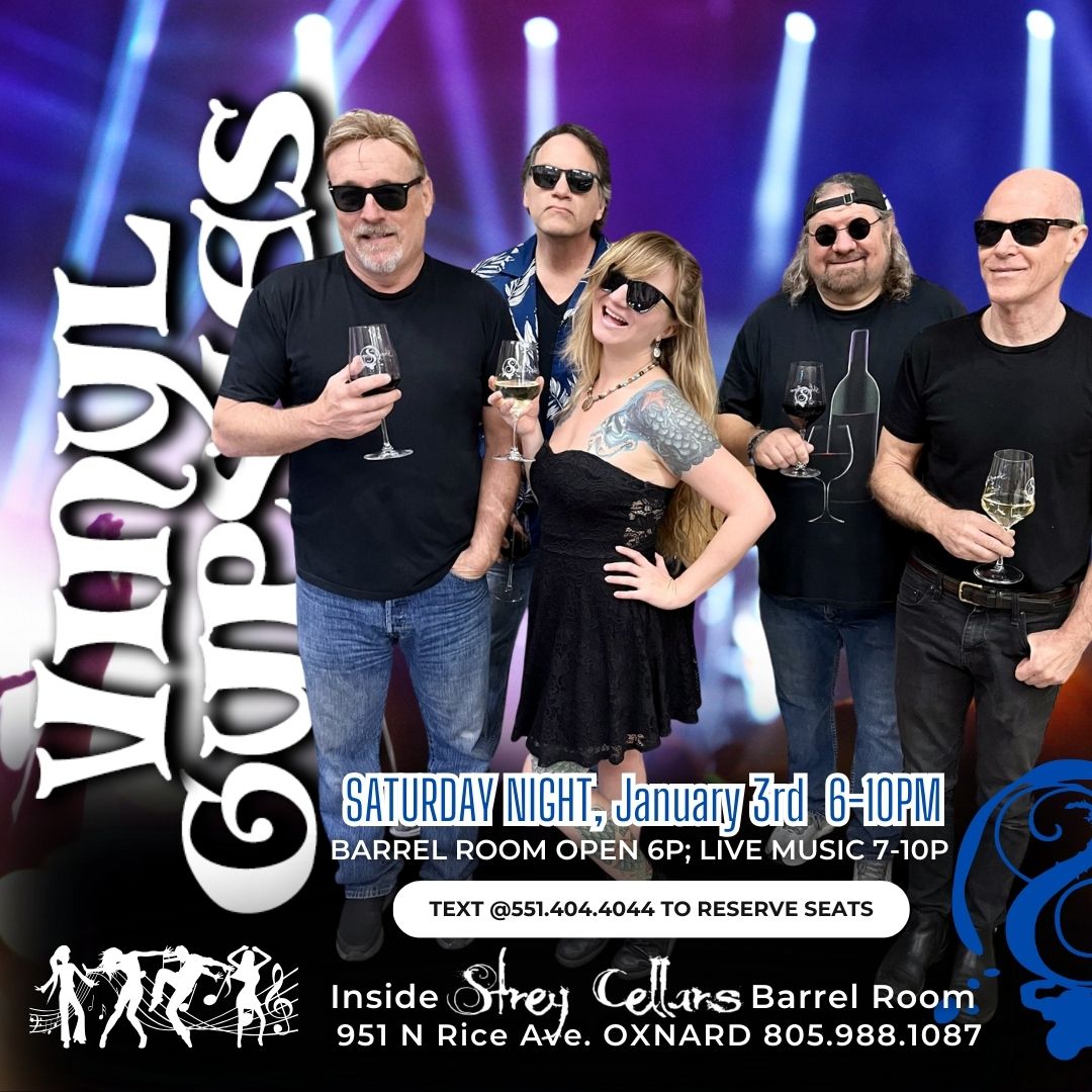 Join us at Strey Cellars for an evening of danceable hits from the 1980s though today. This 6-piece cover band is from Ventura County, CA featuring an energetic group of talented musicians with years of experience playing for crowds of all sizes. We are excited to welcome them to play our barrel room stage for the first time. Get ready for a song list packed with crowd pleasing favorites that will keep you on the dance floor. Prepare yourself for a fun, memorable experience All INSIDE our barrel room! No cover. Wine available by the tasting, glass & bottle.