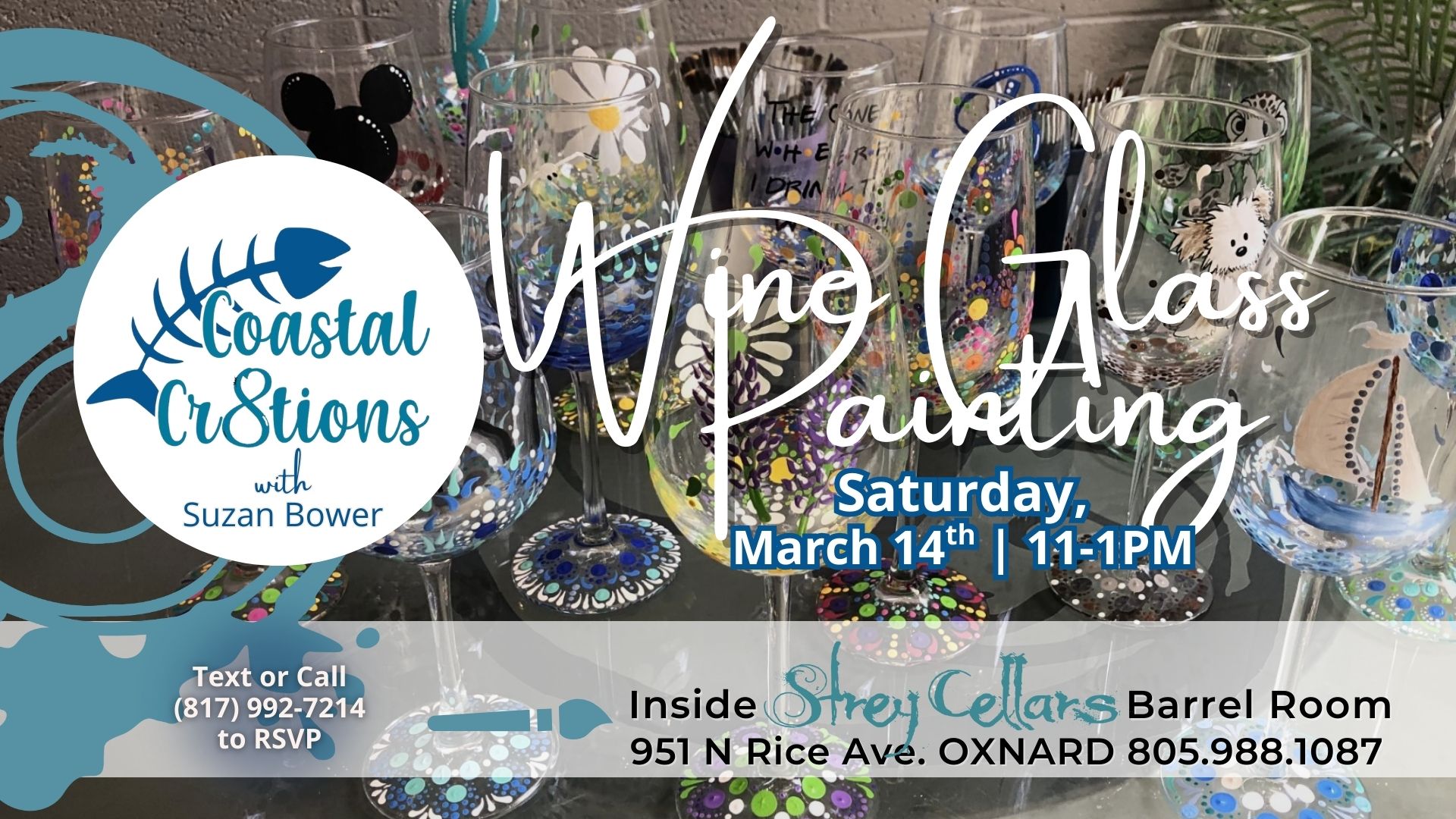 Join Us at Strey Cellars for another Coastal Cr8tions Wine Glass Painting Class. $30 includes all instruction and supplies to create your very own wine