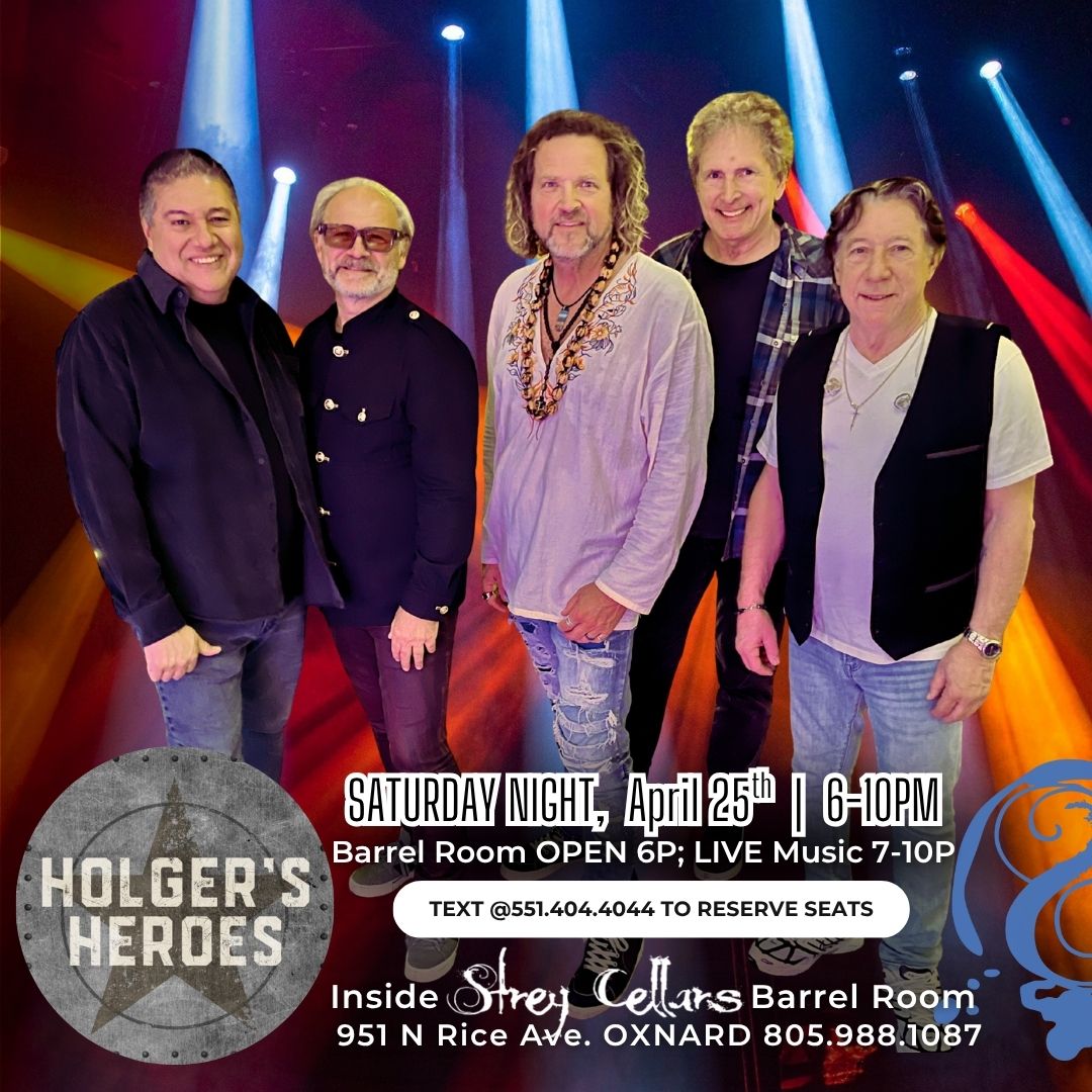 S.A.T.U.R.D.A.Y. NIGHT with Holgers Heroes LIVE 7-10p. Barrel Room Doors OPEN at 6p; PACK A PICNIC or GRUBHUB WELCOME. You’re not goin’ to want to miss THIS Rock n’ Roll cover