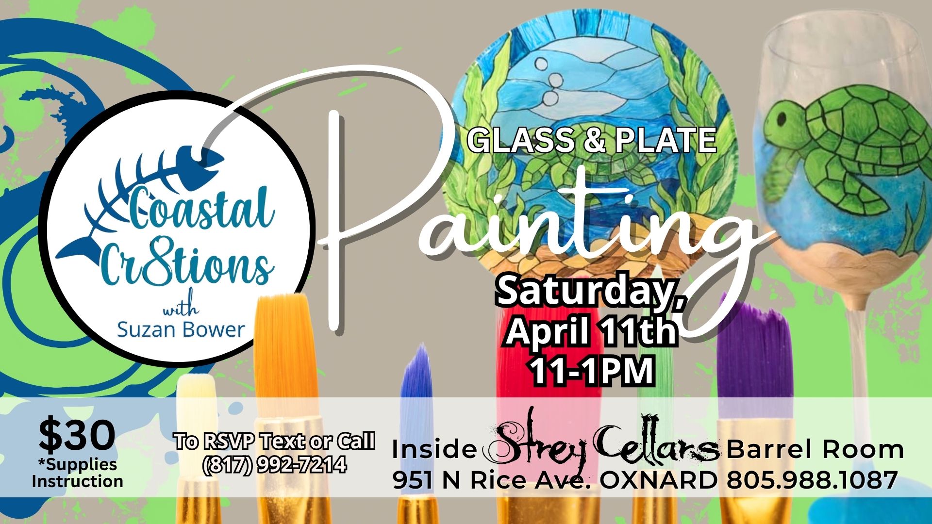 Join Us at Strey Cellars for another Coastal Cr8tions Wine Glass Painting Class. $30 includes all instruction and supplies to create your very own wine