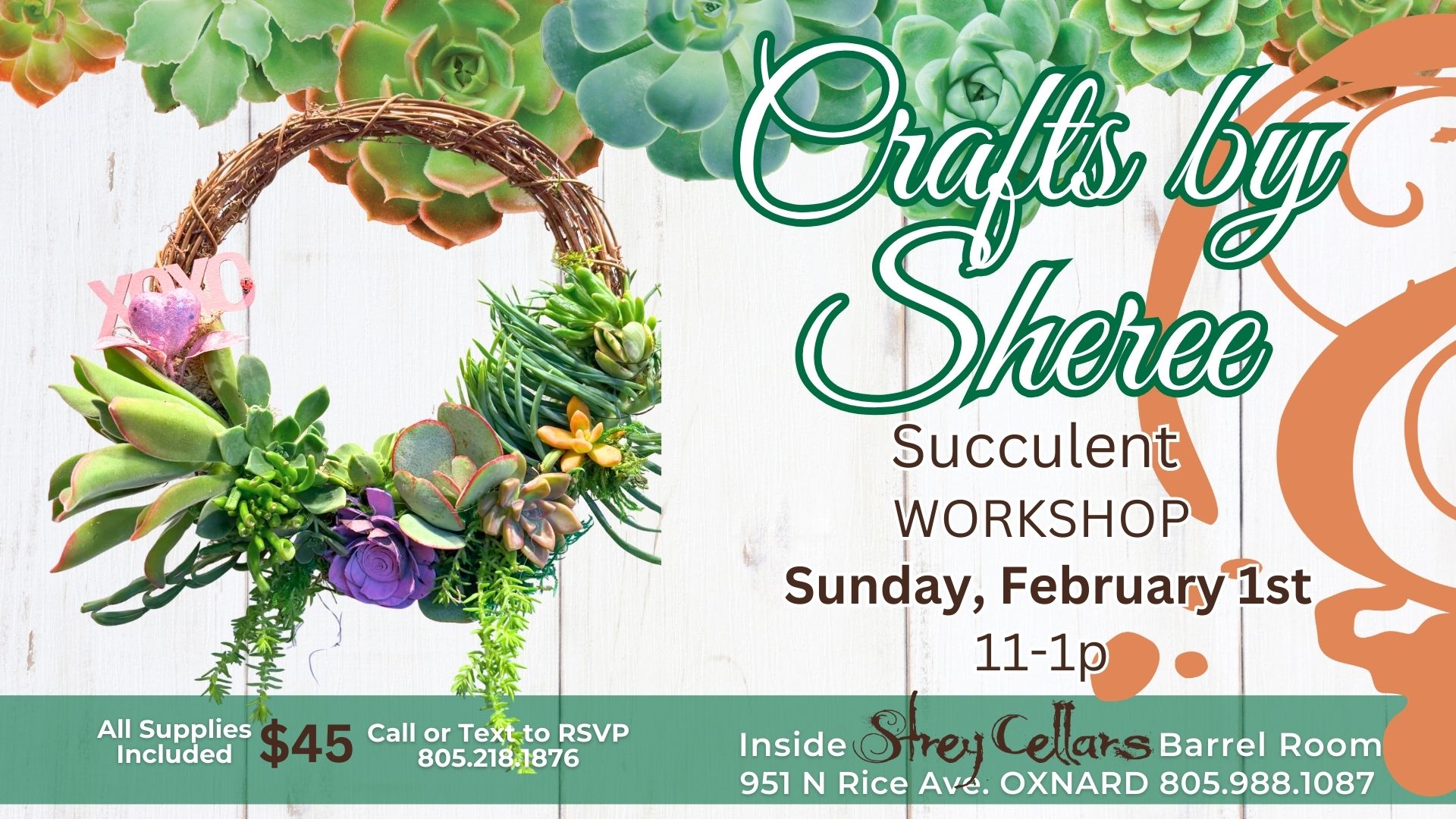 *Crafting Classes and Workshops such as Succulent Arrangements and Art Is Passion all-age-events are current staples within the monthly calendar on select Sundays from 11-1p. (Themes and techniques constantly change to keep you craving more)